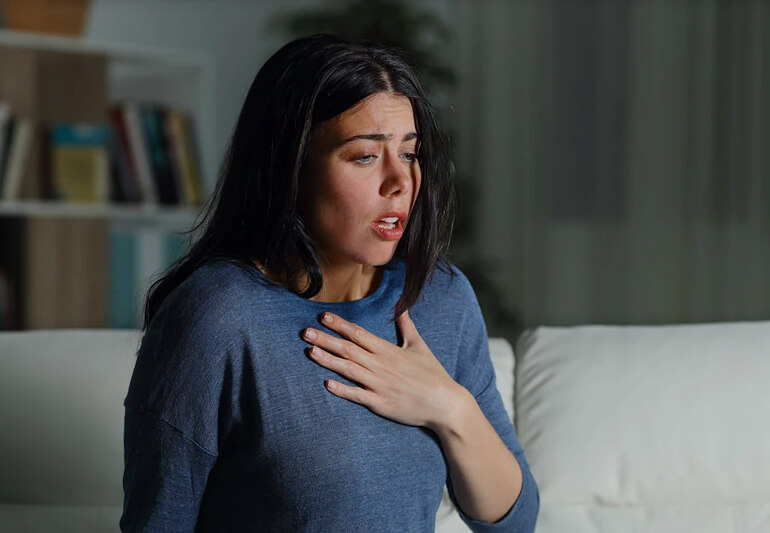 4. Специфика восприятия. В опасной для жизни или здоровья ситуации под воздействием адреналина мощно бьется сердце, человек потребляет больше кислорода, что приводит к одышке. Поэтому присутствие похожей симптоматики трактуется как угроза, хотя на самом деле ее нет.